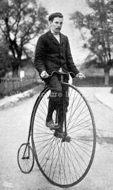 the big wheel resembles a penny, compared to the back wheel that resembles the much